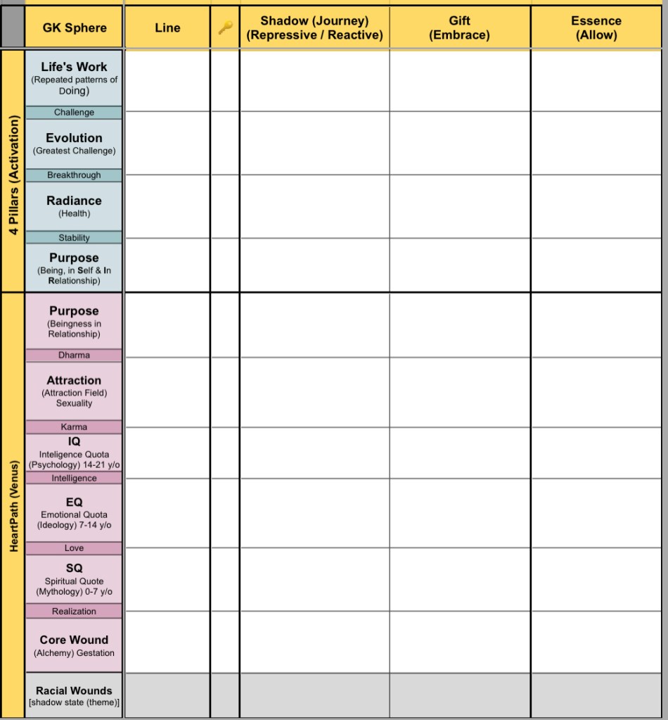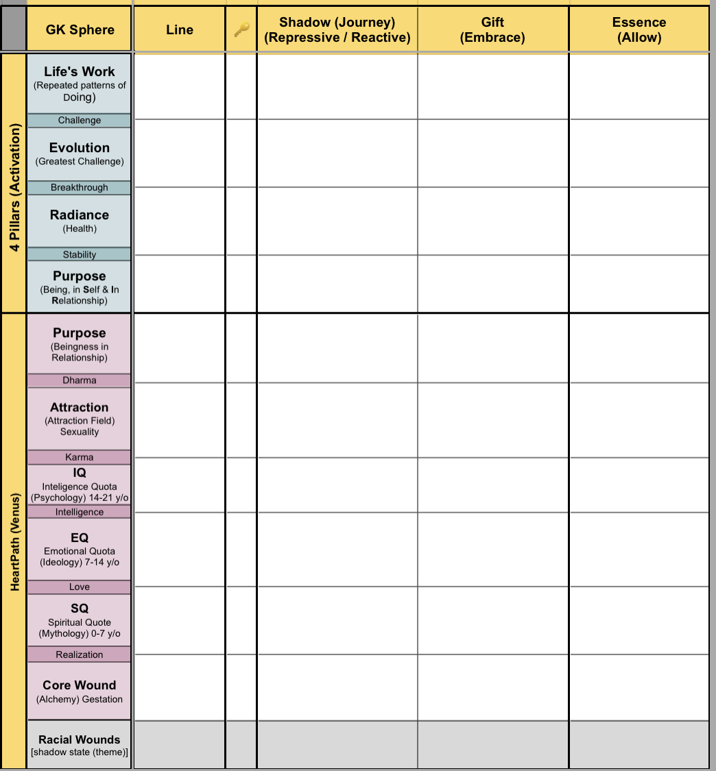 - Gene Key workbook: several overview worksheets, 2 MWM worksheets for each sphere/Key in your chart.